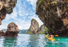 The white limestone cliffs serve as a dramatic contrast to the blue waters at this small surfing beach on Bali’s Bukit Peninsula. Visitors can choose to stay in everything from surfing camps to boutique resorts and private villas, making it a place for people from all walks of life. The isolated location is ideal for those looking to get away.
