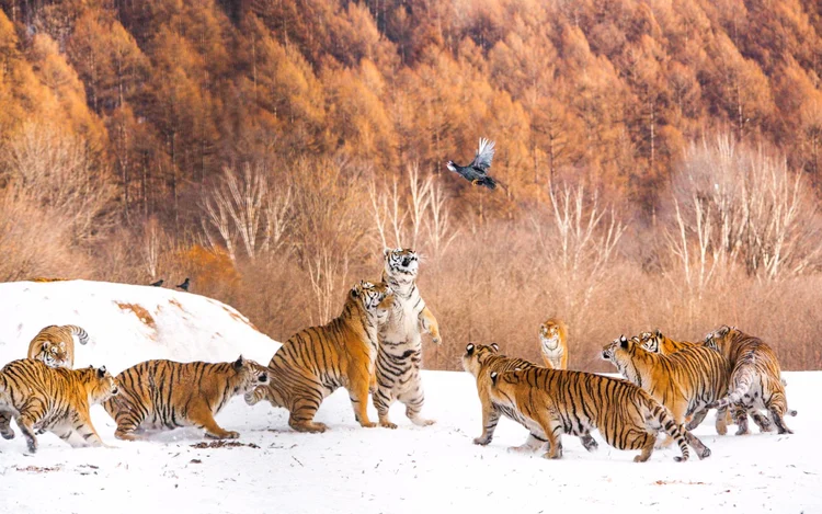 Located on the north bank of the Songhua River and near Sun Island, the 1,200,000 square meter park is the only place in the world where you can admire purebred Siberian tigers, one of the most endangered animals.