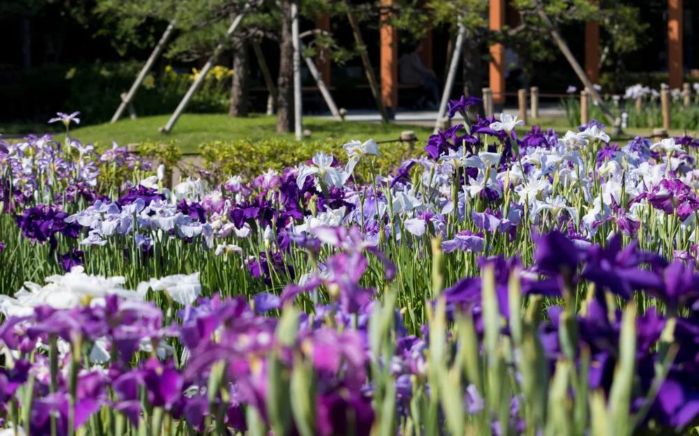 In summer, the park is brilliant with more than 4,000 roses from over 140 species. In late autumn, cosmos flowers bloom all over the park, bringing a cool and gentle Japanese atmosphere. Visitors can ride bicycles, participate in games in the park, or enjoy the wonderful Rock music show held here every August.