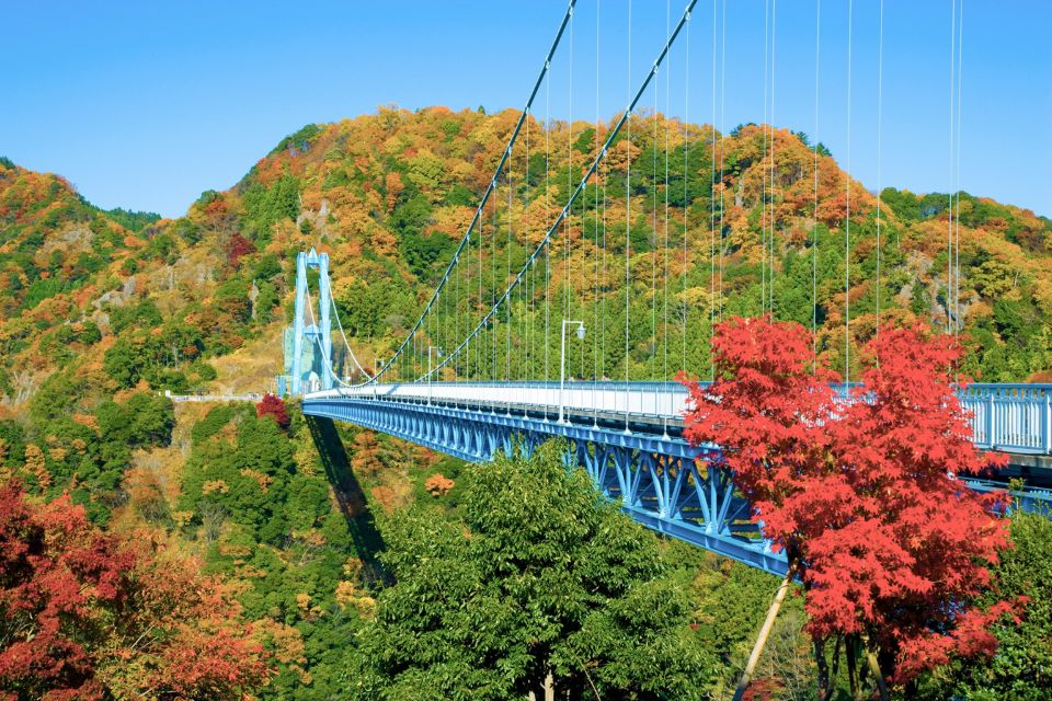 Ryujin Suspension Bridge is one of the longest and highest suspension bridges in Japan, located in the Ryujin Mountains in the Hitachiota area. The bridge is about 375 meters long and over 100 meters high, creating an attractive and relaxing place with majestic scenery of green hills and the misty Ryujin River below. For visitors who enjoy wild natural scenery and immerse themselves in nature, Ryujin Suspension Bridge is an ideal stop on their journey to explore Ibaraki.