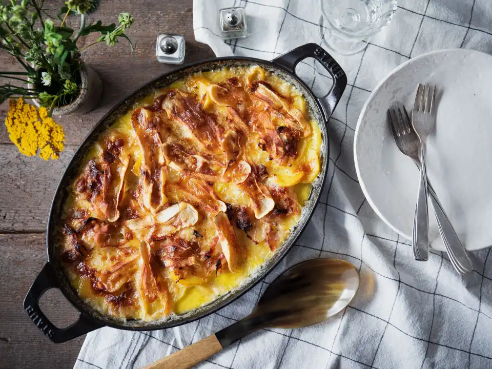 Tartiflette is a dish that reflects the spirit of the Alps, where potato cakes covered with hot Reblochon cheese are served at ski resorts. Made from many thin slices of potatoes, bacon, onions and cheese, this stew not only satisfies the taste buds but also brings a warm feeling, especially after a long day on the snowy slopes.
