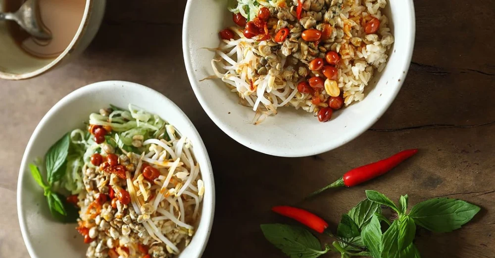 Many Korean tourists jokingly say that mussel rice is the Vietnamese bibimbap. Mussels are stir-fried with mussel water, shrimp paste, pork rinds, crispy fried noodles, chili, peanuts… then mixed and eaten with rice and herbs. Mussel rice is a famous specialty of Hue but is also loved by Hoi An people. Not sophisticated or high-class, mussel rice “captivates” tourists with its simple but unforgettable flavor.