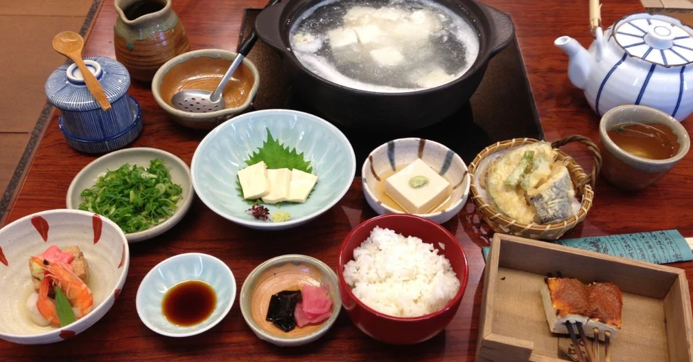 Yudofu full set meal at Ryoanji Zen Temple, Kyoto, Japan