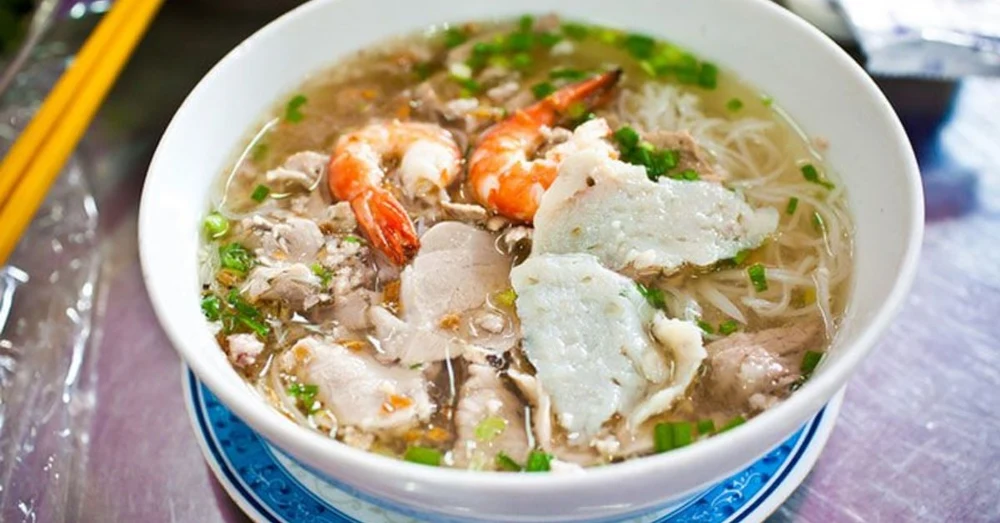 Cambodian noodles have their own unique aroma, the broth has a rich flavor and sweetness from dried squid with shrimp, squid, minced lean meat and noodles… The appeal of Nam Vang noodles is the carefully processed pork intestines and marinated with special spices. You can eat Nam Vang noodles with raw vegetables and add special Cambodian sauce.