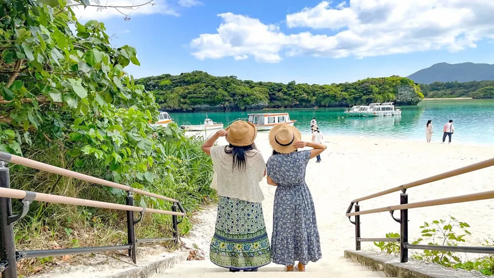 Located in the northwest of Ishigaki Island, Kabira Bay is famous for its creamy white sand, crystal clear turquoise waters, and majestic views of the distant mountains reflected on the calm sea. Although swimming is not allowed directly in the bay area due to environmental conservation, Kabira still captivates visitors with its pristine beauty and clean air that seems to have just been filtered by sunlight.
