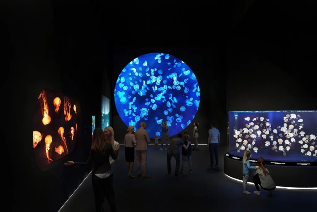 The opening space is a magical scene, where thousands of Moon Jelly jellyfish float rhythmically in magical lights, creating a mesmerizing “jellyfish dance”. All are located in the giant Kreisel system – one of the largest modern jellyfish tanks in the world. In addition to Moon Jelly, you can also admire unique jellyfish species such as Atlantic Sea Nettle or Fried Egg Jelly through the 360-degree glass tank system. The surrounding light and sound effects make you feel like you are entering another dimension – both surreal and biological.