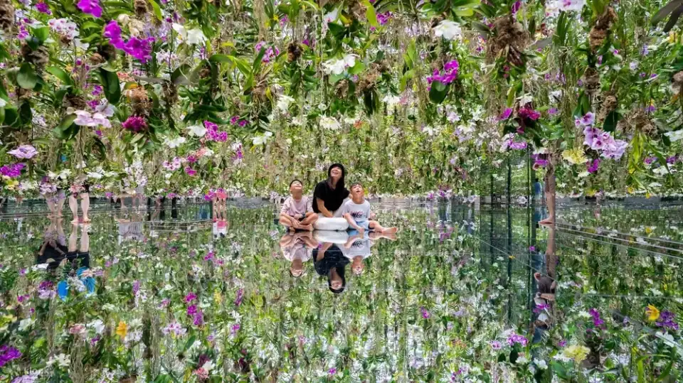 The Floating Flower Garden impresses with more than 13,000 orchids blooming in the air. As you enter, the flower clusters gradually rise to open the path, then gently lower behind. The feeling of being surrounded by flowers creates a space that is both romantic and surreal, making you feel like you are in tune with the rhythm of the garden.