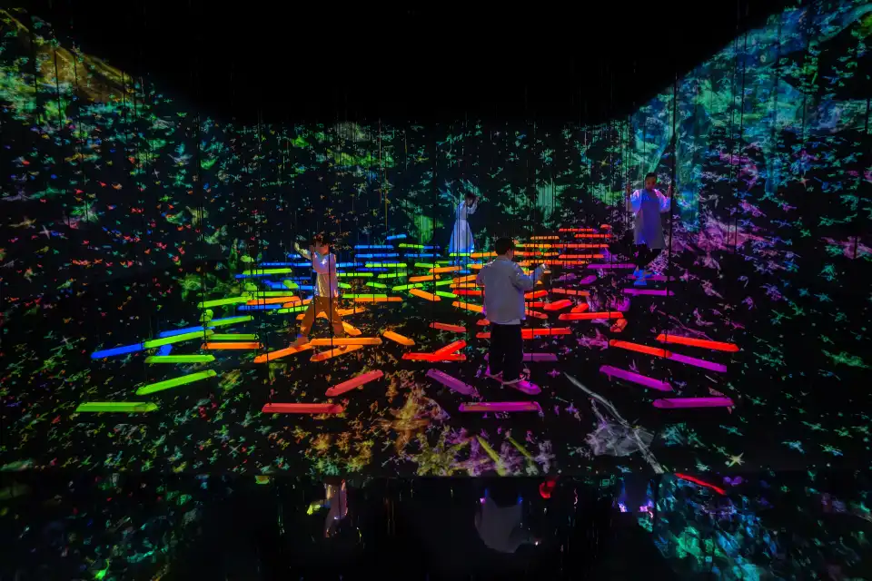 teamLab Planets and teamLab Borderless are both famous digital art museums in Tokyo, but each offers its own unique style of experience. teamLab Planets focuses on deep physical interaction experiences. You will walk barefoot through flooded areas, feeling every movement touching the vibrant digital art world. The journey here is often arranged according to a clear route, helping you experience each area intentionally.