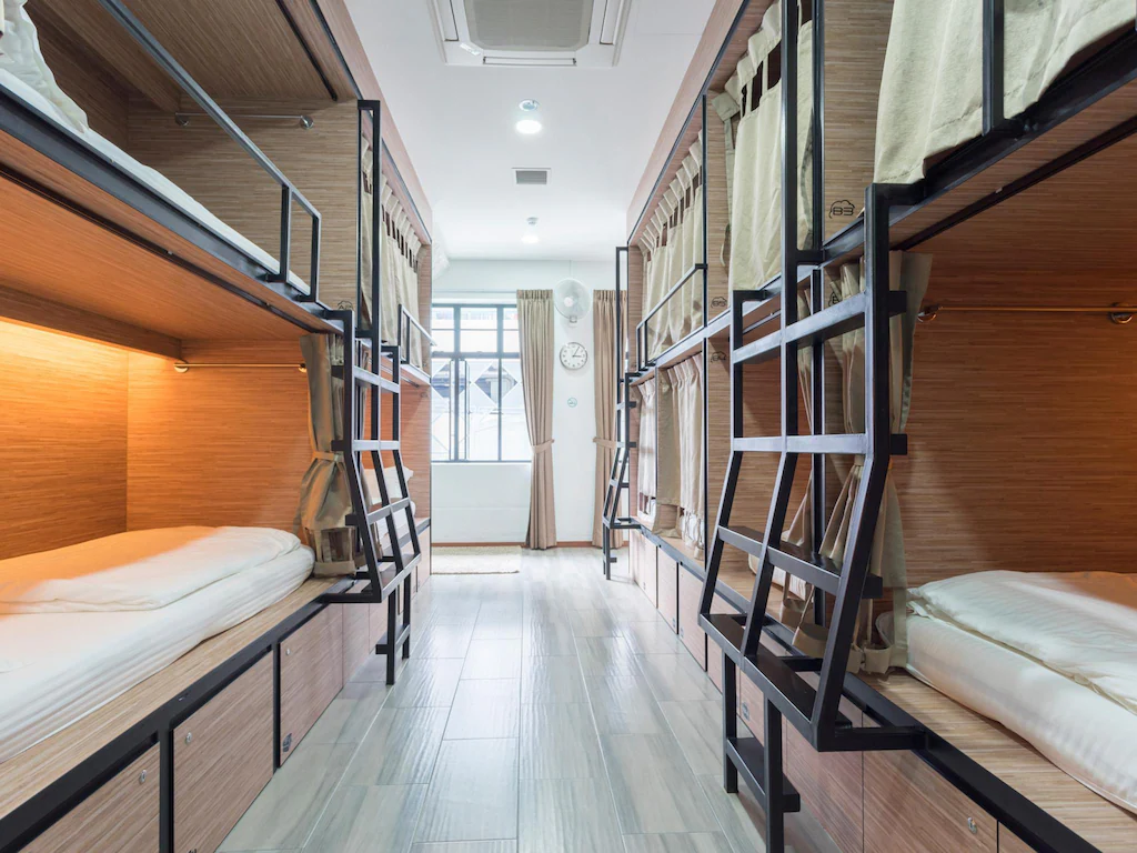 There are many types of accommodations here, but the most popular among backpackers are the dormitory-style rooms with separate sleeping pods and air conditioning. Each spacious capsule sleeps up to 2 people with built-in amenities such as: 2 pillows, warm bedding and duvet, clothes rack, towels, international power sockets, personal lockers, etc. (klook, agoda)
