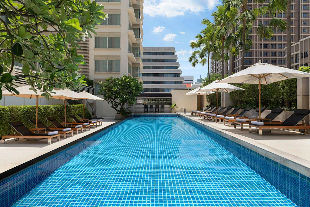 At Oriental Residence Bangkok, tradition is preserved in every gesture, turning each visit into a celebration of the timeless beauty of elegant living. Located on Bangkok’s historic Wireless Road, the hotel is the epitome of sophistication and grace – a classy second home that meets the desires of today’s discerning traveler. Surrounded by history and diplomatic heritage, Oriental Residence Bangkok is surrounded by lush gardens – a haven of peace and privacy, inviting guests to immerse themselves in a sense of belonging. The suite collection harmoniously blends the essence of Oriental living, the warmth of Thai hospitality with modern amenities. (klook, agoda)