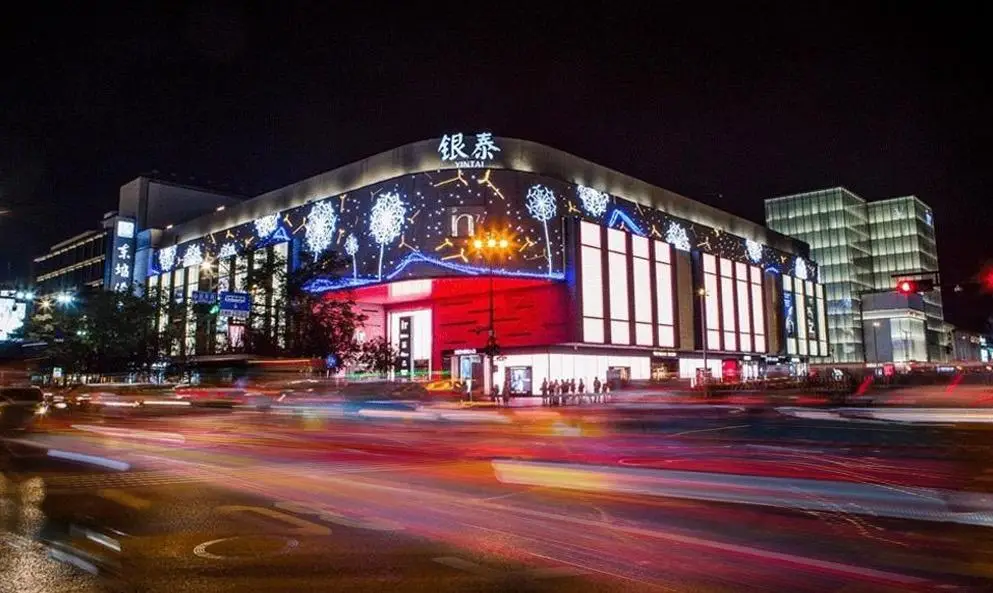 Hubin Yintai IN77 is a high-end shopping mall in the West Lake area of Hangzhou, with five completely connected areas in a total area of nearly 300,000m². Visitors can experience shopping at international fashion brands, dine at a chain of Asian and European restaurants, relax at a lakeside cafe or entertain at the cinema and indoor ice skating rink.
