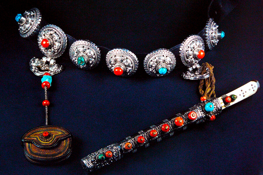 Other accessories: In addition, you can also find nomadic-style silver jewelry, small leather bags, knife cases, or decorative items made from bones, horns… which are also very unique and imbued with Mongolian identity.