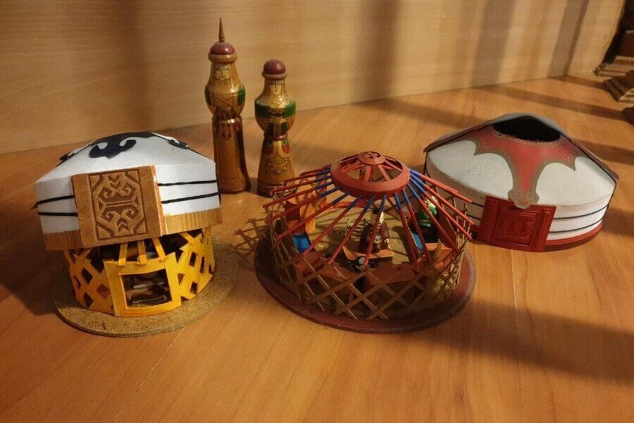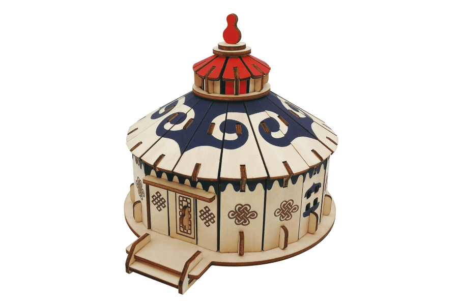 These models are often meticulously crafted from materials such as wood, felt, leather or other synthetic materials, simulating the structure and typical shape of a real Ger tent, from the round frame, support bars to the canvas covering the outside and the small door. There are many different sizes, from small, pretty models for the table to larger, more detailed versions.