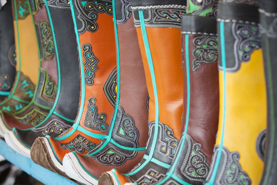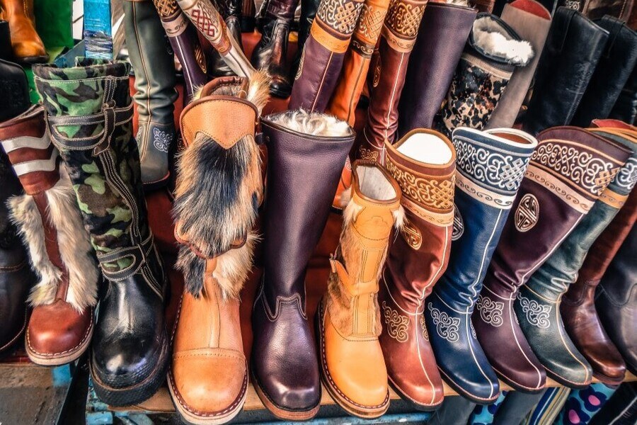 Shoes (Gutul): The traditional Mongolian Gutul shoes are very characteristic with the curved toe. The shoes are usually made of sturdy cowhide, decorated with patterns and are highly durable. A pair of miniature Gutul or other leather products such as wallets, bags inspired by Gutul are also interesting gifts.