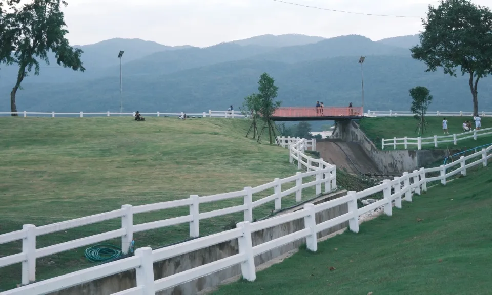 On the last day in the mountain town, Mai Anh and her friend stopped by Chaloem Phrakiat Park (Suan Chaloem Phrakiat) for a picnic. This is a suburban park in Chiang Mai, located near the ring road and the provincial administrative area, open for free from early morning to late evening. The park has a large lawn, cool green trees, paved walkways and an artificial lake.