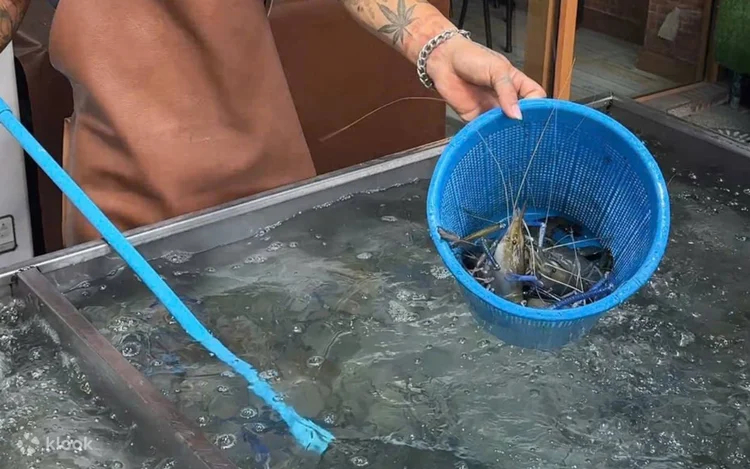 If you love to eat, you cannot miss this shrimp market. As soon as you enter, you can smell the fragrant grilled seafood, the shrimp are big, red, and full of trays. Here you can choose shrimp, fish, squid right at the counter, then have them cook on the spot, hot while blowing on it and eating.