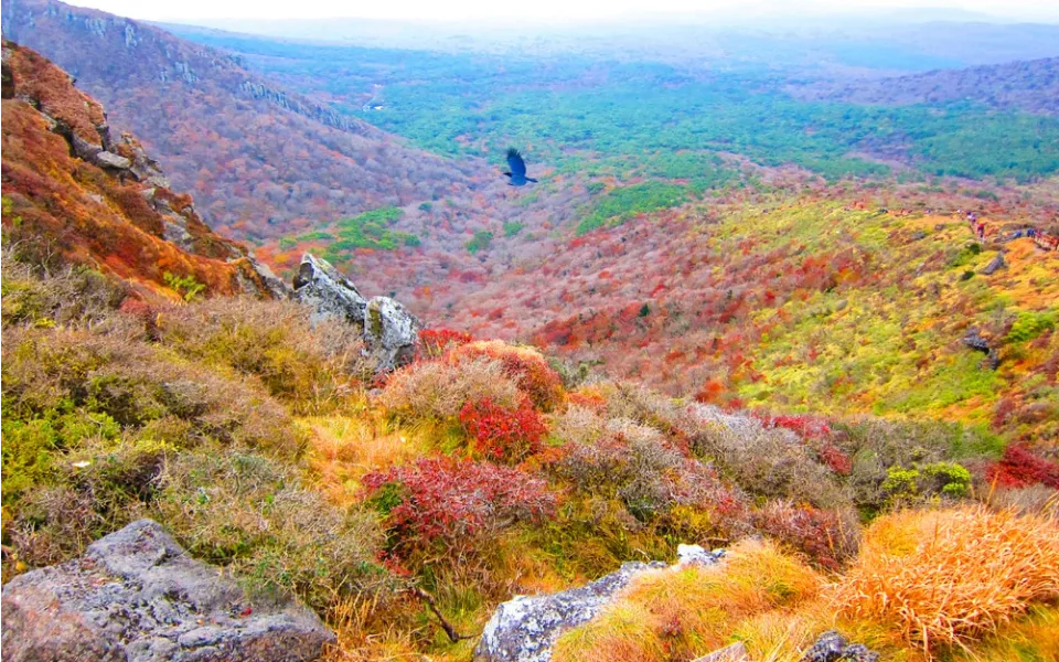 Hallasan Peak, the highest mountain in Korea, is a must-see destination when traveling to Jeju in the fall. From the red maple forests to the lush green vegetation turning golden yellow, Hallasan offers a beautiful natural picture, both poetic and majestic.