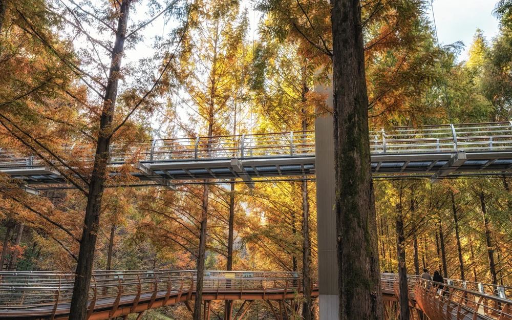 To fully experience this beauty, don’t miss the opportunity to challenge yourself on the skywalk and suspension bridge. From here, you will have a breathtaking panoramic view, taking in the brilliant autumn picture of Jangtaesan.