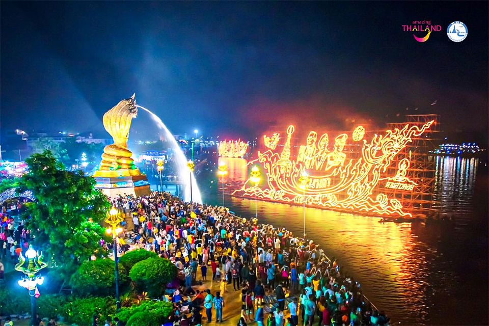 To pay respect and welcome the Buddha, Ruea Fai fire boats decorated with flowers, incense, candles and lanterns are set adrift on the Mekong River in the evening. It is also believed that this ritual will wash away the sadness and misfortunes in life along the river. You will admire the elaborately crafted and decorated boats along the Khong River.