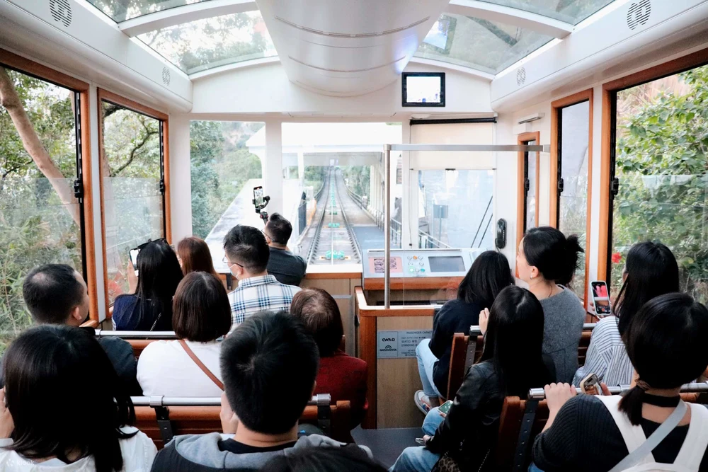 The line is 1,365 meters long, crossing a height of 28 meters to 396 meters. The train can carry 120 passengers at a time, including 95 seats and 25 standing places. On the journey, the Peak Tram passes through six stations including Garden Road, Kennedy Road, MacDonnell Road, May Road, Barker Road and The Peak.