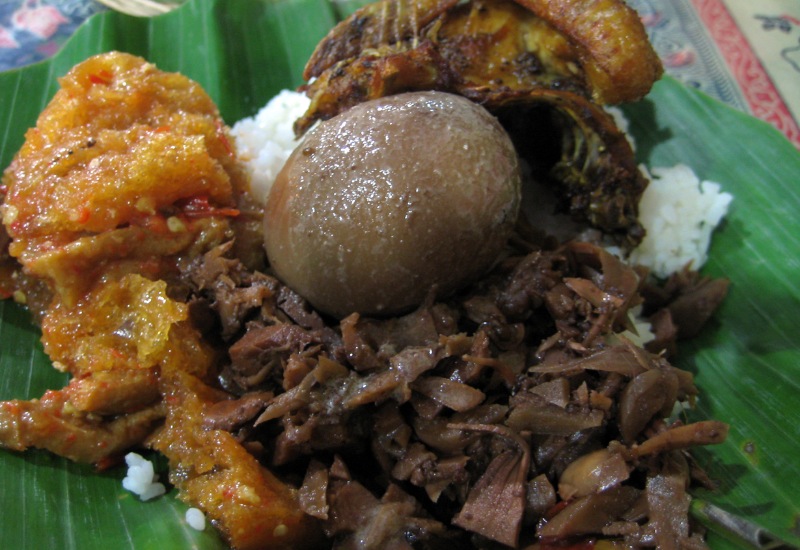 It can be said that Nasi Gudeng is quite similar to braised jackfruit in Vietnam, but Nasi Gudeng is prepared in a more elaborate way. The young jackfruit fibers are shredded, then stewed with eggs, coconut pulp and other vegetables. When all the ingredients are soft and mixed together, they can be enjoyed with white sticky rice. Indonesians often eat this dish with a very spicy chili to enhance the taste.