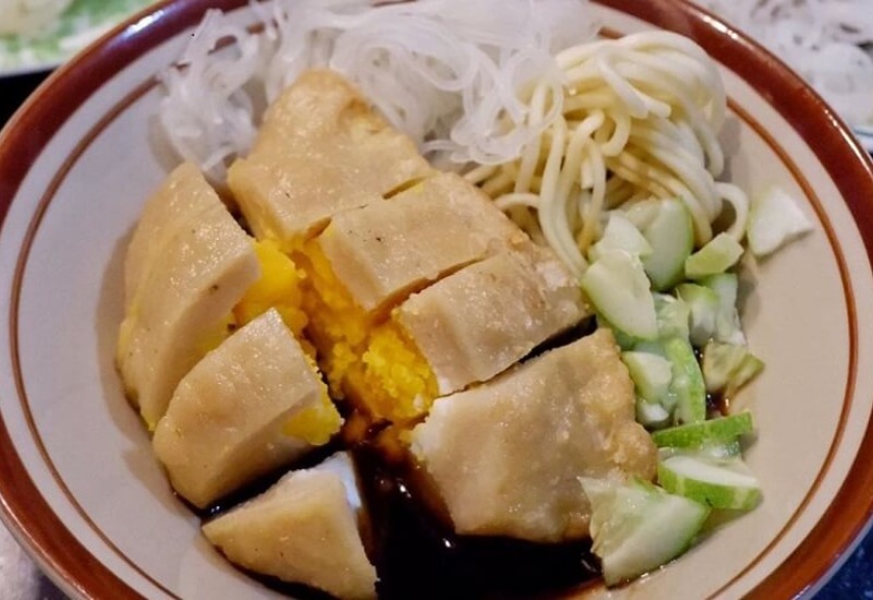 There are many types of noodles made from different grains such as glutinous rice, rice, soybeans, green beans… This dish has a quite affordable price, when you eat it, you will feel the slight toughness of the noodles along with the sweetness of the stir-fried vegetables such as carrots, onions, cucumbers… all bring a very delicious and easy-to-eat feeling.