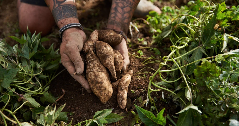 Kūmara is a New Zealand sweet potato, a tuber with a long history with the Māori people. It comes in a variety of colours from red, orange, yellow to purple, with a sweet and nutty flavour and is used in a variety of dishes. You can find Kūmara in stews, baked goods or served with meat.