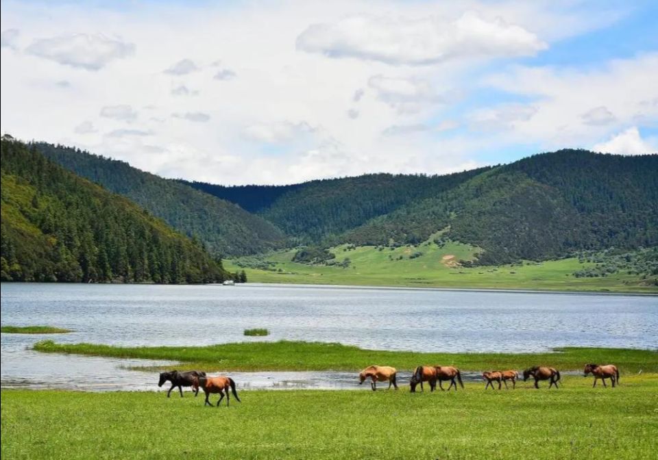 In the summer, when heavy rains fall, the water level rises and floods the entire grassland, creating a small lake that locals call Napa Sea. Conversely, in the spring and after the rainy season, when the water level decreases, the Yila Grassland reappears, creating a breathtaking scene. Visitors can enjoy the excitement of horseback riding on these vast grasslands, immersing themselves in the vast and poetic space of Shangri-La Grassland.