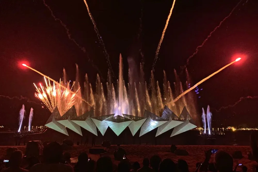 In addition, the horizontal backdrops of 9 triangles are like a wide screen in the middle of the sea and sky. Each episode of the play will take you from one experience to another, making you excited to follow the story and burst into tears at the final ending with the image of fireworks lighting up the sky. All together create a “masterpiece” that the lion island nation of Singapore sends to visitors from far away to visit their country.