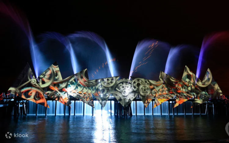 In front of you will be a stage floating on the water with laser beams piercing the night sky, making the space bright and full of color. The colorful lights seem to be dancing next to the water jets that can be up to 25m high, giving you ups and downs as the story progresses.