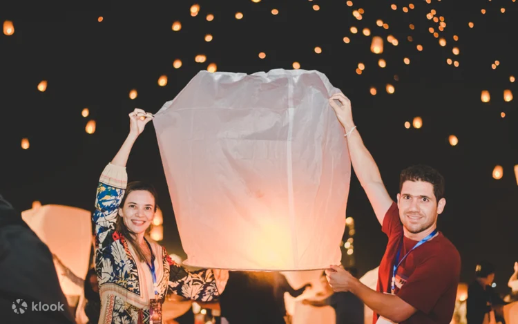 Platforms such as Klook often offer official ticket packages for large-scale Yi Peng events (e.g. Chiang Mai CAD Khomloy Sky Lantern Festival, Yeepeng Lanna International). Tickets usually include transportation, meals, and lanterns. You should check the ticket types (Standard, VIP, Elite) and additional services before booking.