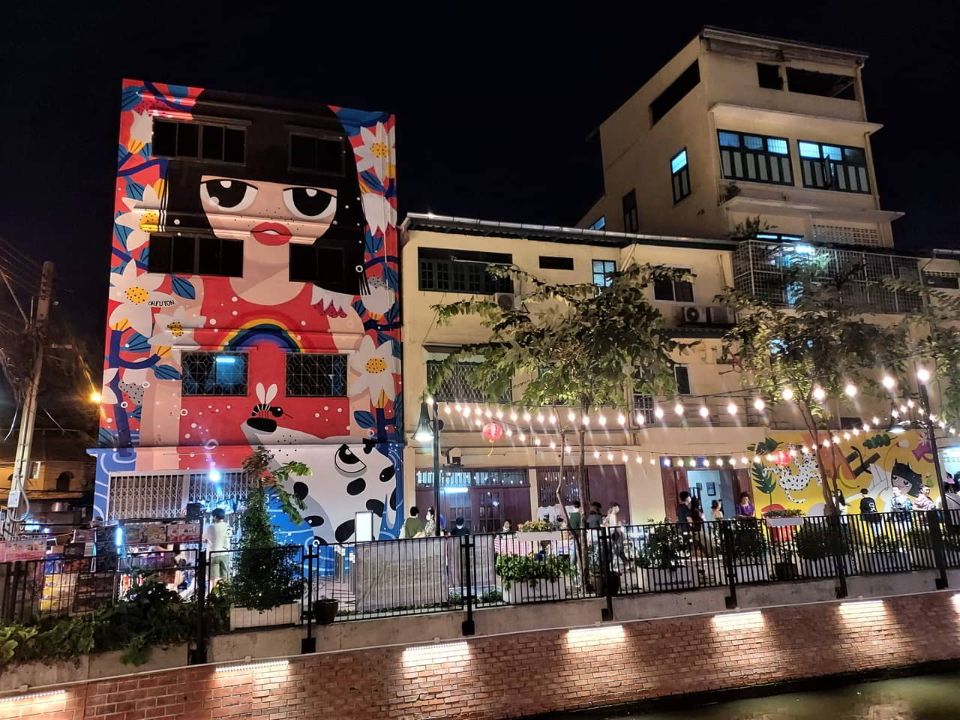 Not as noisy as Yaowarat, nor as bustling as Jodd Fairs, Khlong Ong Ang Walking Street brings a very different experience. The old canal has been renovated cleanly, with rows of colorful lanterns on both sides, vibrant street art murals and pretty little shops. While walking and listening to street music, you feel like you are participating in a friendly small festival right in the heart of Bangkok.