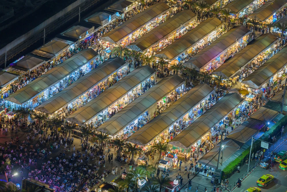 Rama 9 area is known as a “food paradise” with long rows of food stalls that are always bustling. Huge grilled seafood, pad thai, spicy tom yum, Thai milk tea, or all kinds of sweet desserts – all are available. Interspersed with stalls of local brand fashion, handmade accessories, and unique secondhand goods, walking here is like a hunt full of surprises.