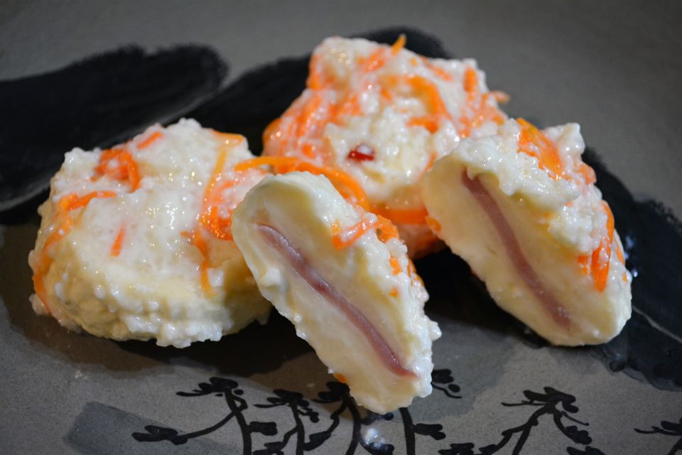 Kaburazushi is a specialty dish of Ishikawa, Japan. This dish is made from salted yellowtail – or sometimes mackerel – placed between pieces of pickled radish and then packed in koji stock for several days. This process creates a rich, savory, umami flavor. Kaburazushi is often served with sake or green tea. It is traditionally served during the New Year, but can be enjoyed at any time of the year.