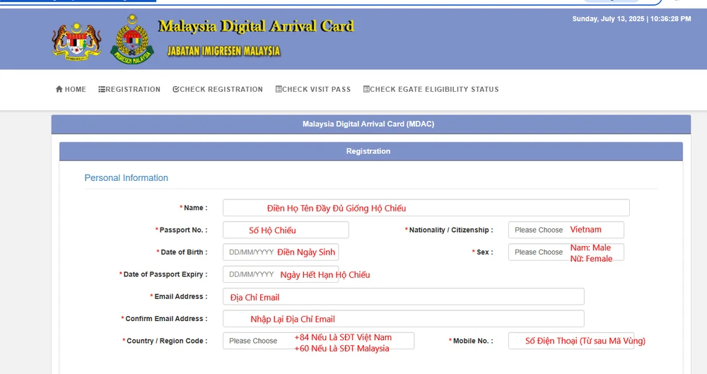 Note: Currently, there are many fake websites that charge unofficial fees for supporting MDAC filling. The MDAC digital arrival card is completely free and should only be declared directly on the official website of the Malaysian Immigration Department. Absolutely do not provide personal information or make payments through unknown intermediaries. False declarations or invalid pages may result in your being refused entry.