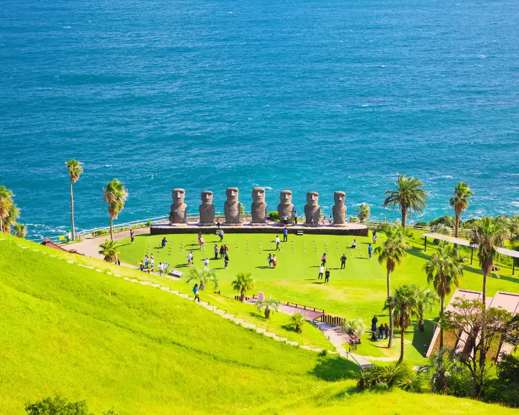 You don’t have to go to Chile to see the giant Moai statues on Easter Island. Now, with Sun Messe Nichinan Park, you can witness with your own eyes the giant Moai statues standing tall in the middle of the turquoise water gently moving towards the Pacific Ocean. In particular, these are the statues recognized by the Easter Island government as the only replicas.
