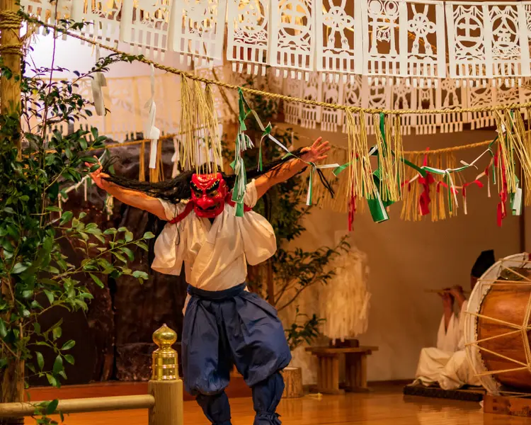In addition, Amano Iwato Shrine is also the venue for the Amano Iwato Kagura festival from November to February every year. This is a festival where people will perform 33 dances all night long to pray for a bountiful harvest, drive away evil spirits and invite the gods to the Kagurayado building. According to legend, these dances are one of the secrets that make the gods bring Amaterasu out of the Amano Iwato cave.