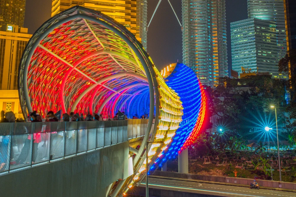 The architecture of the twin towers is a sophisticated combination of traditional Islamic and modern styles. The special highlight of the twin towers is the sky bridge connecting the two towers on the 41st and 42nd floors, allowing you to admire the panoramic view of Kuala Lumpur. From here, you will see skyscrapers, busy streets and green parks.