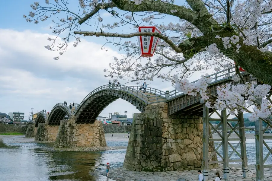 In addition to sightseeing and taking pictures, visitors to Kintai-kyo Bridge in spring should not miss the experience of sitting on a fishing boat and strolling on the river. If you have time, you can also visit Kikko Park nearby to see the old houses of Samurai families.