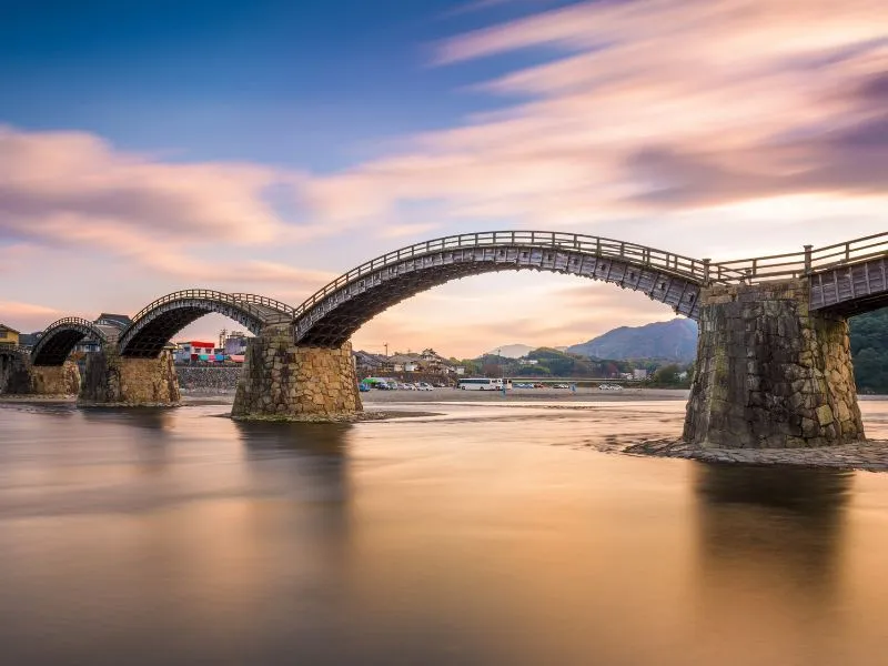 The romantic scenery at Kintai-kyo Bridge captivates visitors. @Shutterstock | yamaguchi travel guide