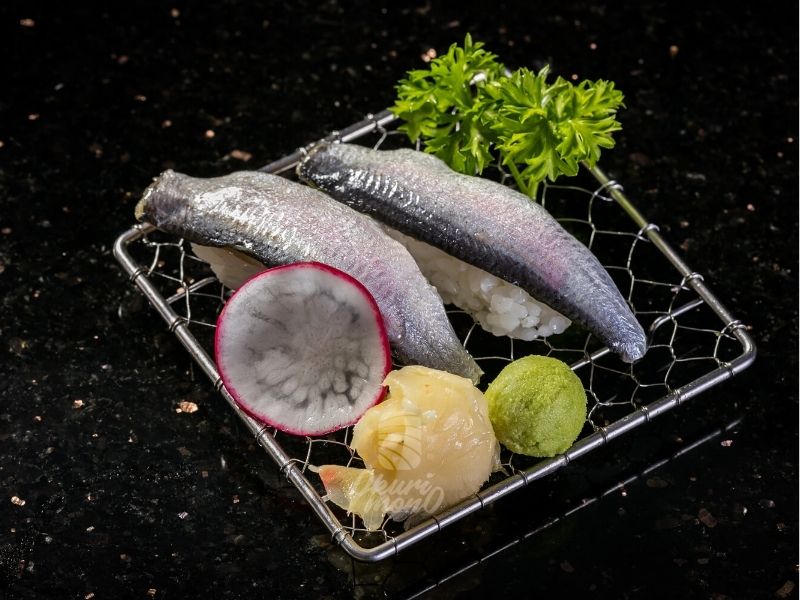 The sushi filling includes unique ingredients such as: Seto Inland Sea fish, shiitake mushrooms, renkon lotus root, etc.