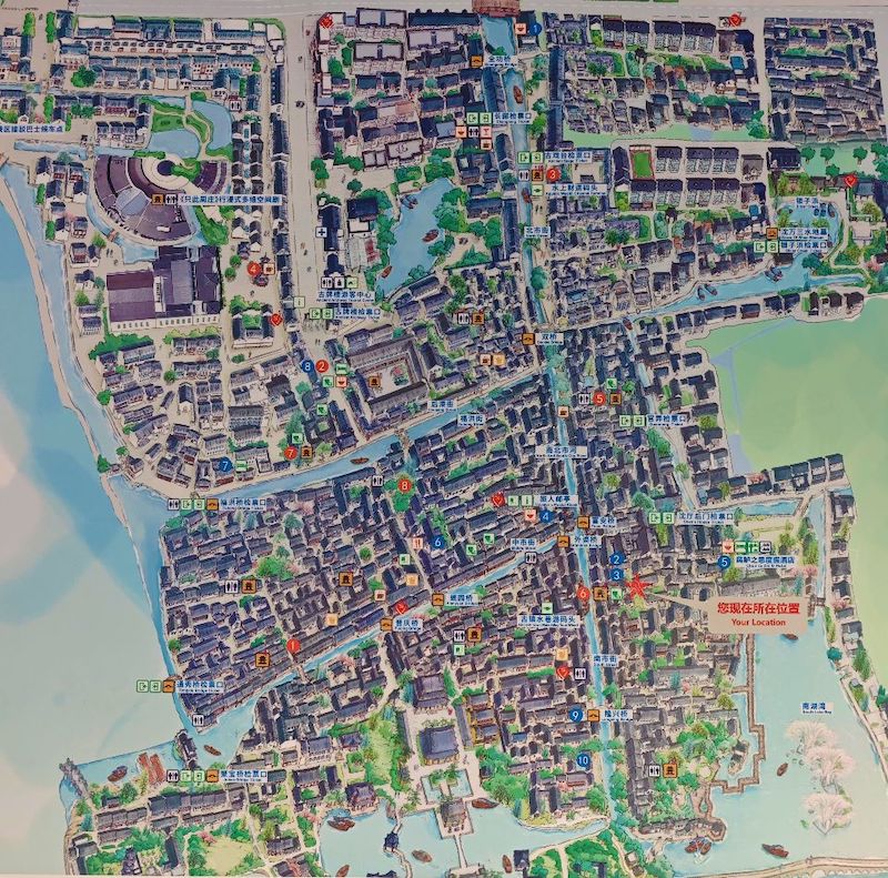 - Metro + bus: Take line 11 to Huaqiao, then take Kunshan bus 106 to Zhouzhuang Bus Station, then transfer to Kunshan bus 261 to enter the town center.