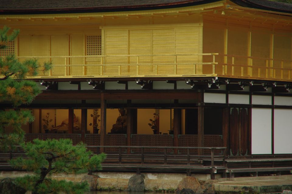 One of the things that makes Kinkakuji impressive to domestic and foreign tourists is the impressive architectural combination of wood, plaster, and real gold. The first floor is designed in the Shinden style commonly seen in Heian period palaces, using simple wood and plaster materials. Inside the first floor are statues of Shaka Buddha and Yoshimitsu.