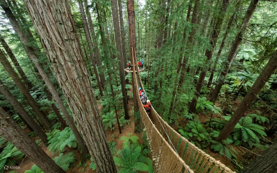 The tour features a total of six ziplines and two suspension bridges, the longest reaching 220 meters, offering a safe and adventurous experience with dedicated guides. Visitors can also learn about Rotorua Canopy Tours’ native bird conservation project and explore this stunning forest!
