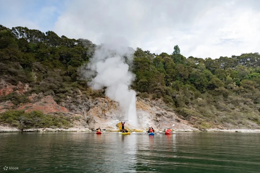 I chose kayaking to admire the panoramic view of the lake and feel the warmth of the water. Many visitors enjoy fishing for trout, as the lake is considered the most productive fishing ground in New Zealand. Some tours here even take visitors to Mokoia Island in the middle of the lake to hear the legendary love story of Hinemoa and Tūtānekai.