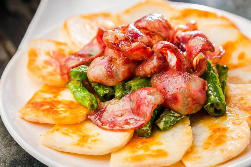 The ingredients for stir-fried rice cakes are rich and diverse, reflecting the culinary cultural exchange of Yunnan. This dish can be stir-fried with various meats such as beef, pork, or fresh vegetables like mushrooms, carrots, tomatoes, and peas. The seasonings are usually soy sauce, oyster sauce, and a little chili for a mild spiciness. The result is a colorful, fragrant, and nutritious plate of stir-fried rice cakes.