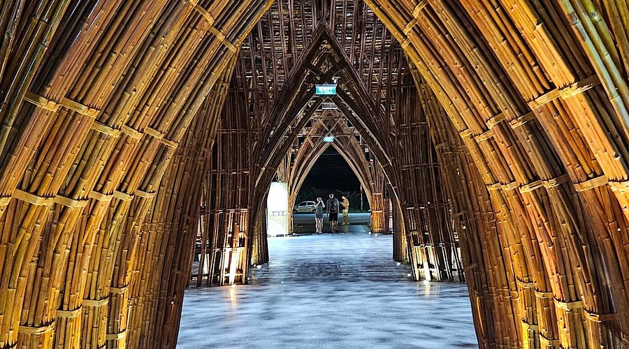 Right next to Urban Park is the Bamboo Building – the largest bamboo architectural structure in Vietnam. Standing nearly 15 meters tall and covering 700 square meters, the building stands out with its exquisite combination of bamboo, bronze drums, and lotus flowers – three symbols of Vietnamese culture. This structure was designed by architect Vo Trong Nghia using over 42,000 bamboo poles from Tay Ninh. Inside, the air is naturally cool and pleasant, even on sunny afternoons.