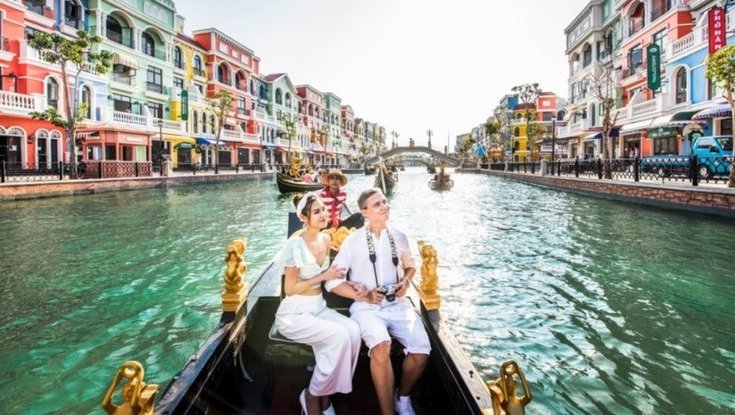 After dinner, take a 3-minute stroll to the Gondola pier to begin your romantic journey through Grand World. This is the “Vietnamese version of Venice,” with its 830-meter-long canal, turquoise water, and rows of brightly colored Italian-style buildings on both banks.