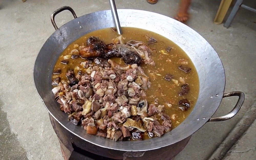 Thang Co is a traditional dish deeply rooted in the cultural identity of the H’Mong people and other ethnic groups in the Northwest highlands. This dish is made from the offal of a horse (or buffalo, cow), simmered for many hours with characteristic mountain spices such as cardamom, cinnamon, star anise, and nutmeg. Thang Co has a rich, fatty, and fragrant flavor and is usually enjoyed hot.