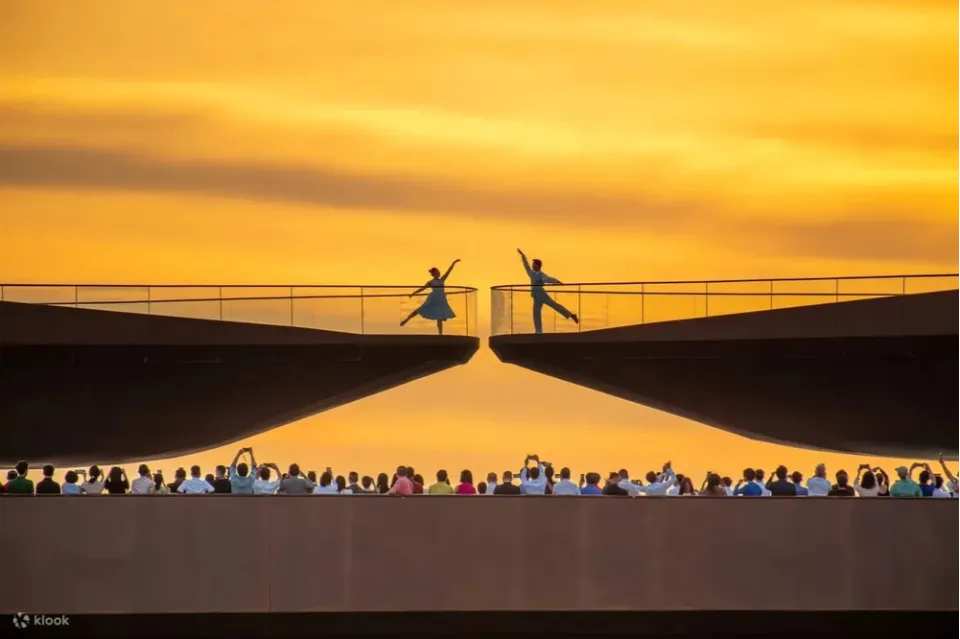 In the evening, it transforms into a spectacular performance space with the Kiss of the Sea multimedia art show: fireworks, lights, music, fire, and water blending together. The sunset over the sea, combined with the 20-minute performance, is truly unforgettable.